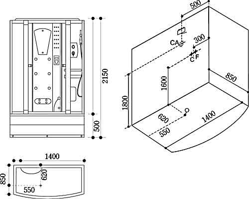 Thông số lắp đặt phòng tắm hơi ướt Govern JS-0148