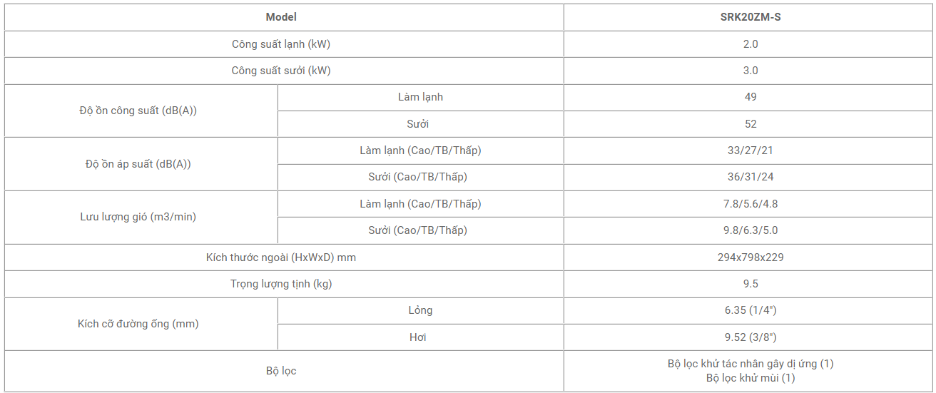 Dàn lạnh Mitsubishi SRK20ZM-S có công suất làm lạnh 1 HP, phù hợp bố trí ở những căn phòng có diện tích dưới 15 m2. Với mức công suất này, bạn có thể lắp đặt máy ở phòng ngủ, phòng làm việc nhỏ, phòng khách…đều rất phù hợp.