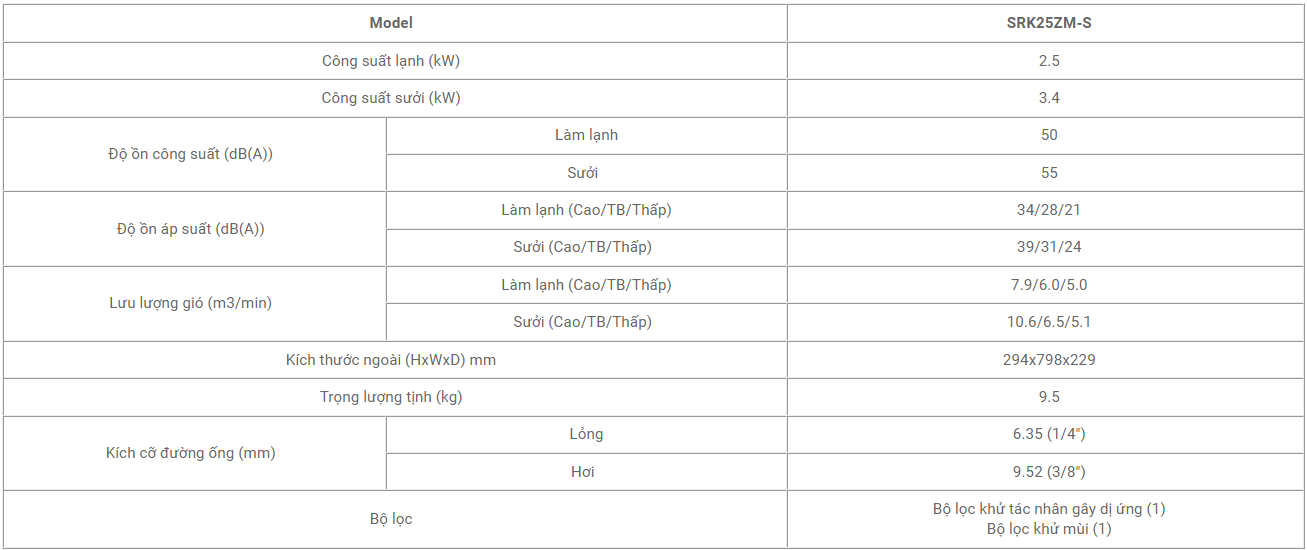 Ưu điểm của dàn lạnh Dàn lạnh treo tường điều hòa Multi Mitsubishi SRK25ZM-S 9.000BTU: